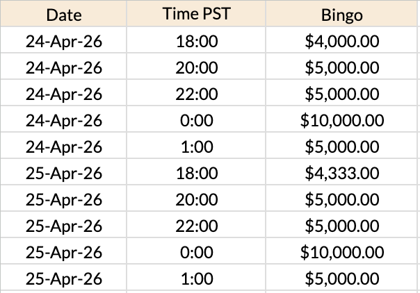 Check out the Mega Bingo Games Schedule Prizes from April 22 to 29