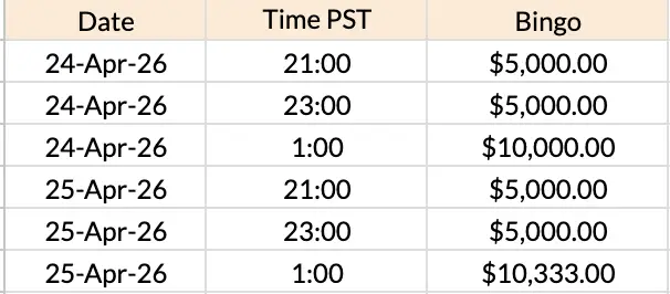 Check out the Mega Bingo Games Schedule Prizes from April 22 to 29