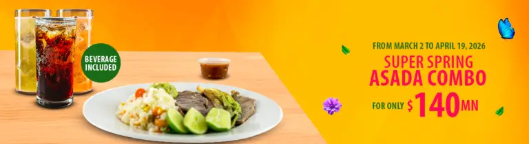 All of the above plus a beverage (soda, lemonade, or orangeade) for $115 MXN.