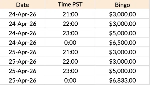 Check out the Mega Bingo Games Schedule Prizes from April 22 to 29